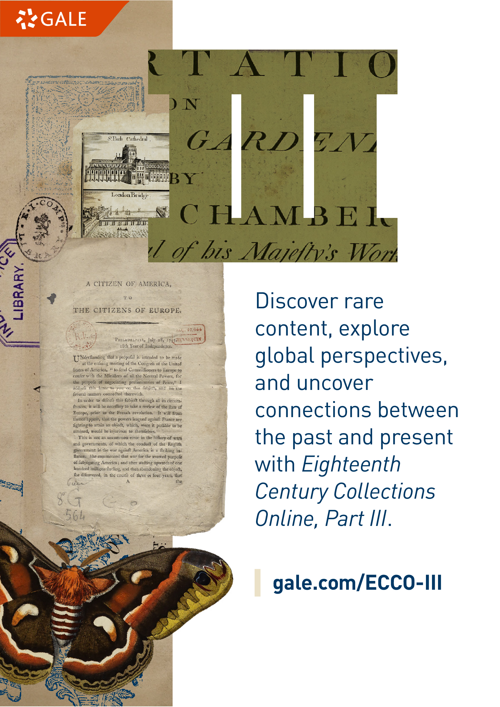 <table border="0" cellpadding="0" cellspacing="0" width="677"><tbody><tr><td height="19" width="677">Eighteenth Century Collections Online, Part III adds 1.7M pages of rare 18th-century content—including broadsides, maps, full-color covers—spanning Europe, the Americas, Asia, and Australia. It deepens research into the century’s global impact on modern institutions.</td></tr></tbody></table>Eighteenth Century Collections Online, Part III adds 1.7M pages of rare 18th-century content—including broadsides, maps, full-color covers—spanning Europe, the Americas, Asia, and Australia. It deepens research into the century’s global impact on modern institutions.